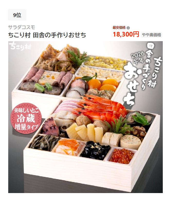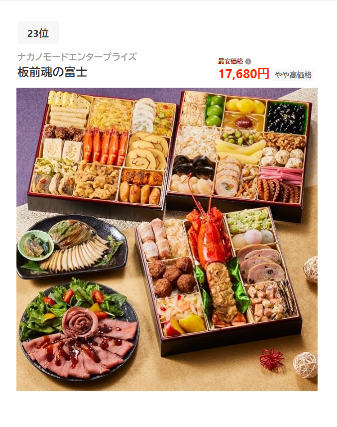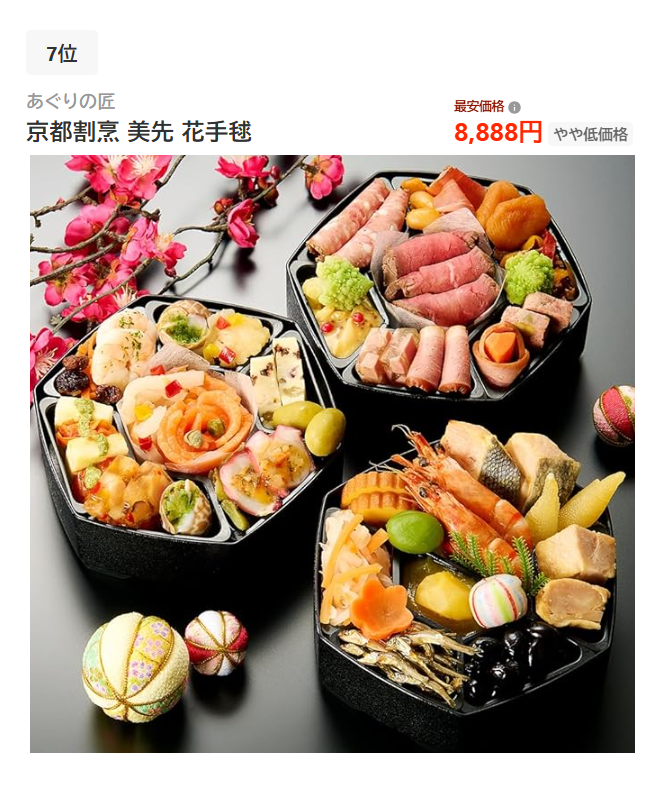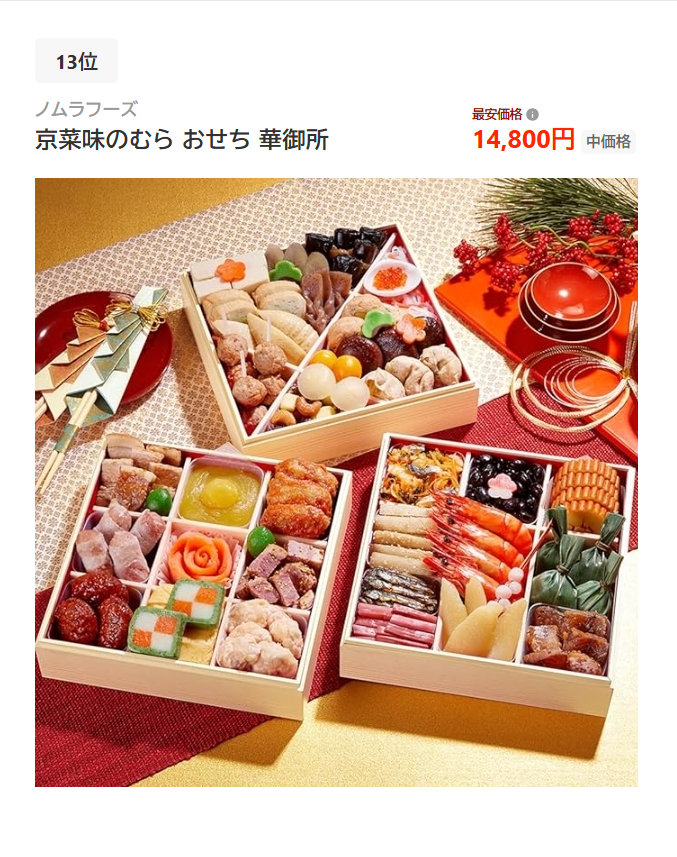 • 冷蔵おせち(生おせち): 盛り付け済みで、届いてすぐに食べられます。風味や食感の劣化が少ないですが、賞味期限が短く、配送日が大晦日などに限定されることが多いです。(ランキング 【2位】 【3位】 など)