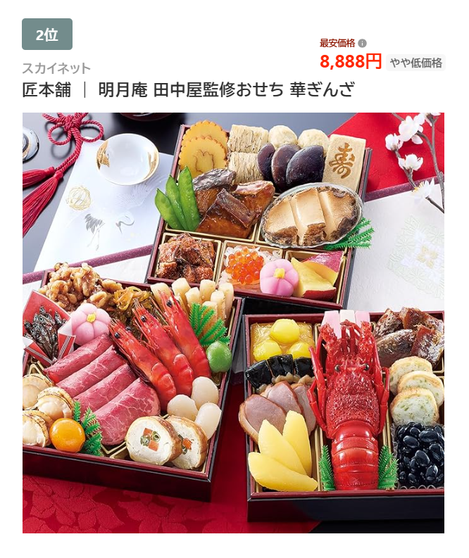2位スカイネット明月庵 田中屋監修おせち 華ぎんざ和風8,888円〜約3人冷蔵