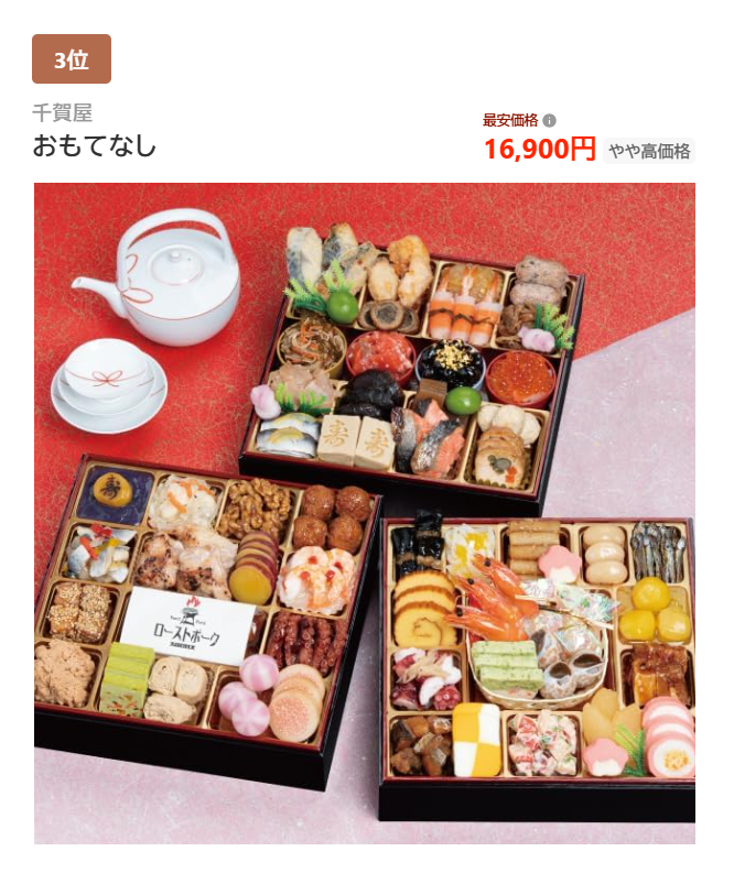 順位ブランド名おせち名ジャンル価格帯(税込)人数目安保存方法