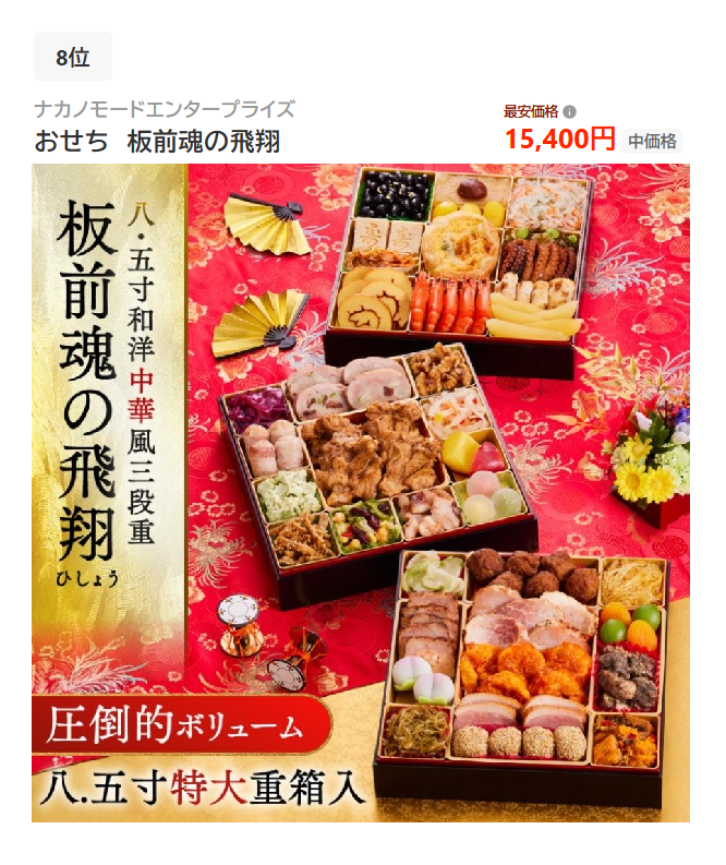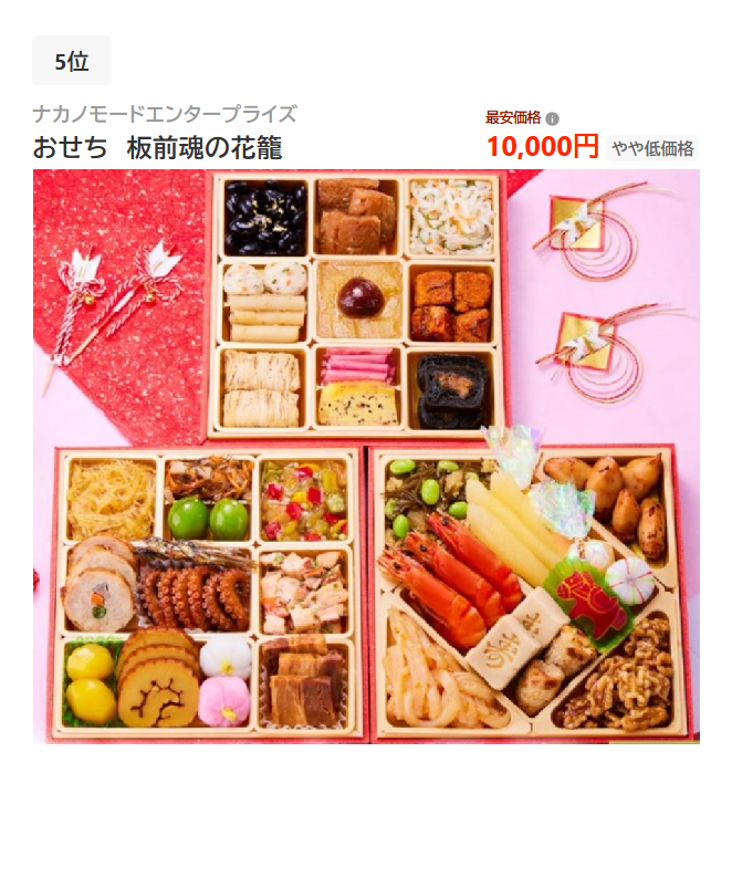 5位ナカノモードエンタープライズおせち 板前魂の花籠和洋折衷10,000円〜3人冷凍