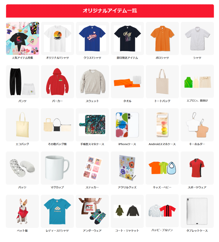 【第3位】オリジナルプリント.jp:選べるアイテム数は業界最大級