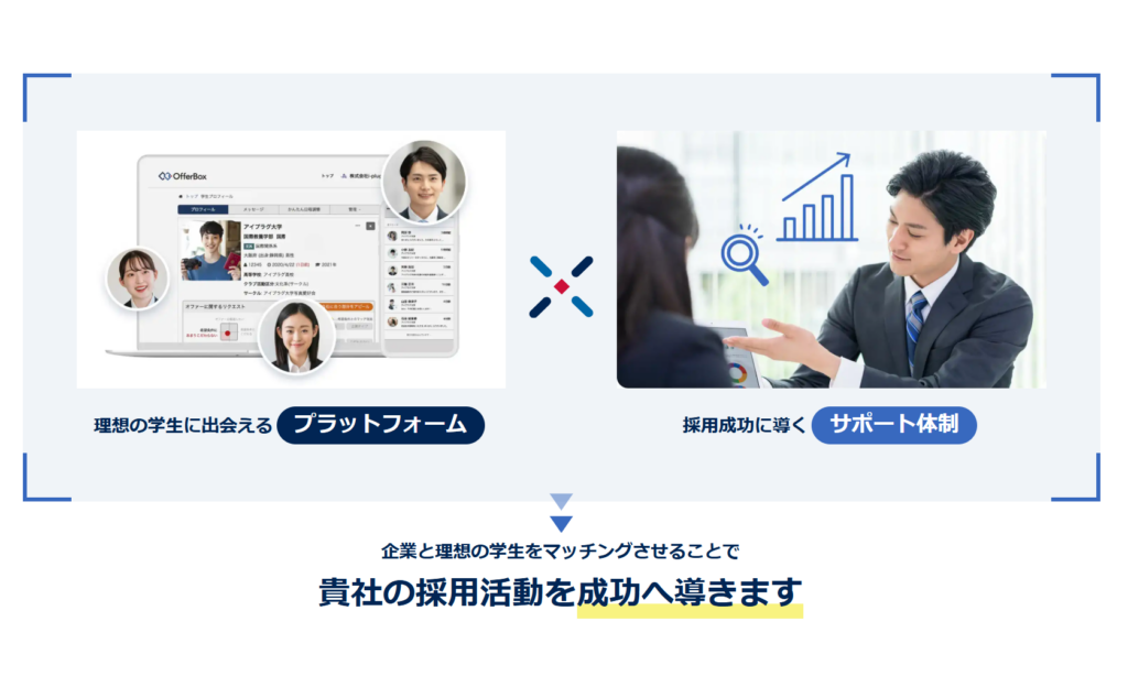 リクルートエージェントとの連携や、適性検査「SPI」などの周辺ツールとの親和性が非常に高いのが強みです。学生の行動ログに基づいたマッチング機能も進化しており、自社に興味を持ちそうな学生へ効率的にアプローチできます。大手企業を中心に、安定した採用実績を求める企業に根強い人気があります。