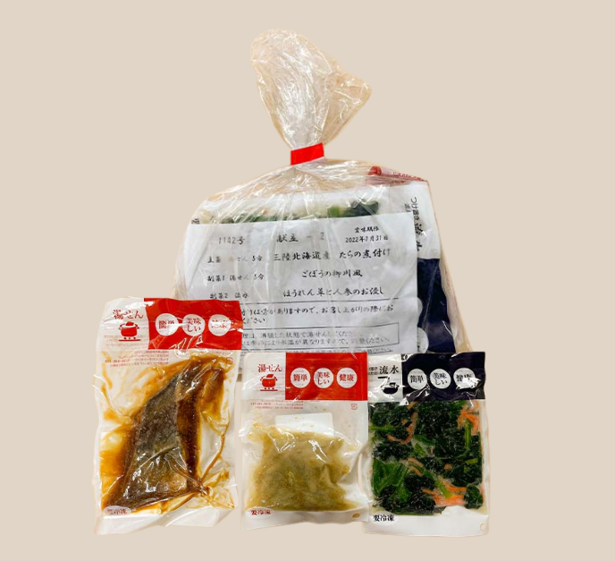 こちらのメインは、調理済みの料理が個食パックで届く「健幸ディナー」。湯煎や流水解凍するだけで、プロが作った和食・洋食・中華が完成します。